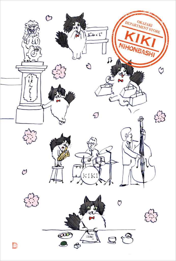 KI02 旅するKIKI 日本橋 コラボ 2025.10.29 春の日本橋にて 桜の季節の日本橋のイベントにて。 日本橋といえば青銅製の麒麟像。 おしゃれなお店で買い物して、福徳神社でおみくじひいて、ちょいとJAZZ BANDに参加して、おしゃれな都会を満喫したKIKIでした。