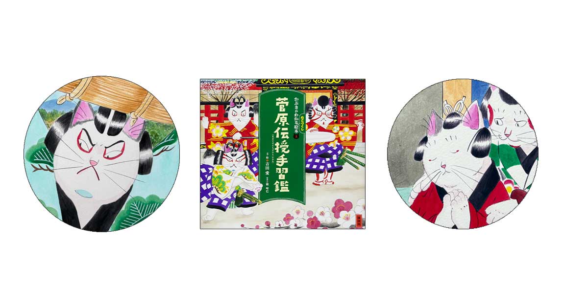 「筆法伝授〜菅原伝授手習鑑 」「かぶきがわかるねこづくし絵本3 菅原伝授手習鑑 (講談社)」より