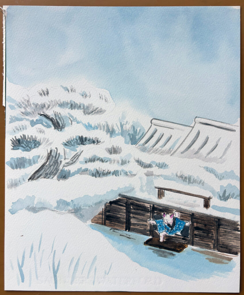 雪景色を描くのが大好きなので、ここぞとばかりに大きく据えました。